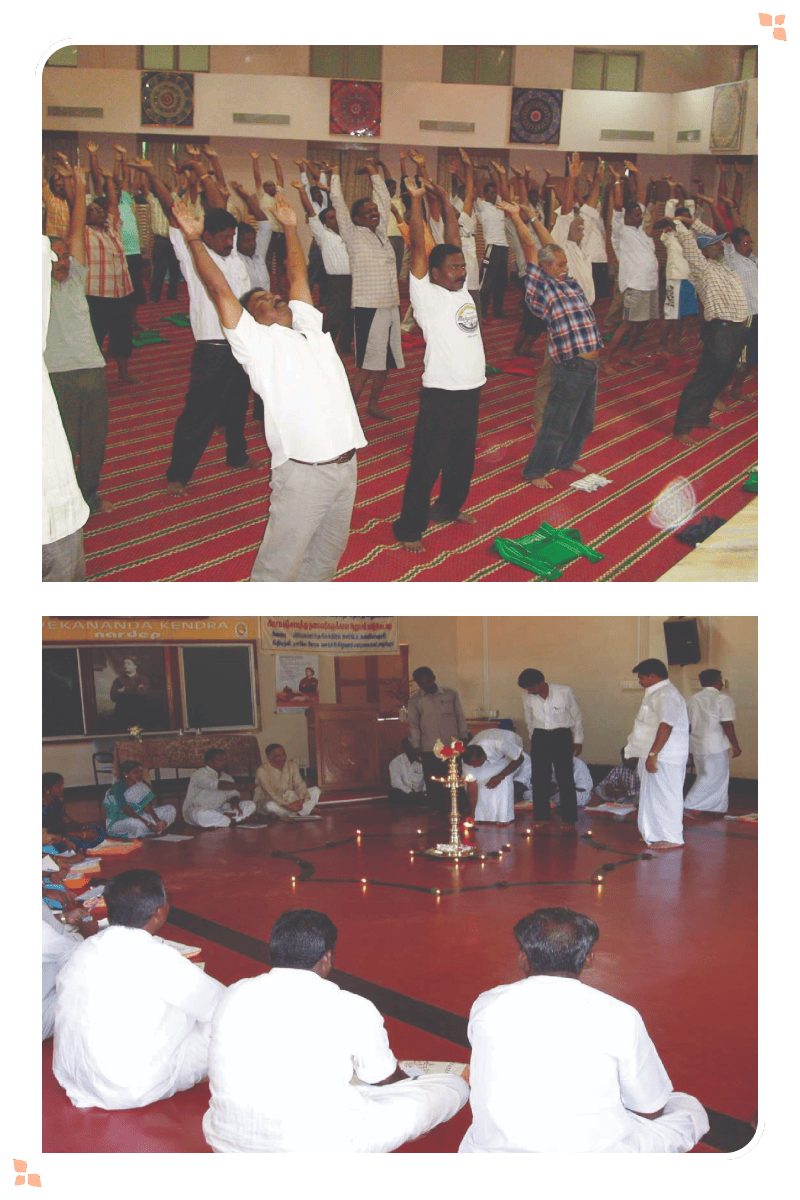 Yoga and personality development camps are tailored for officials and community leaders to cultivate inner strength.