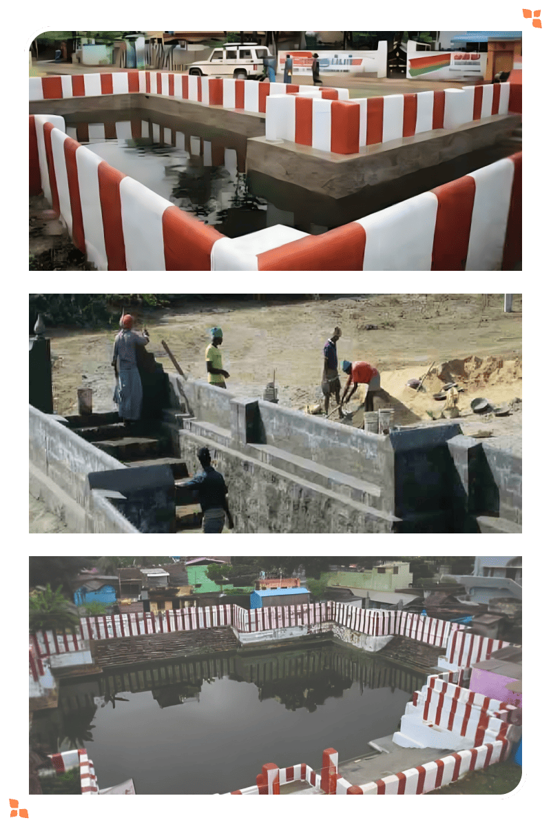 Revival of traditional water harvesting structures like ooranis and temple tanks to optimise water harvesting.